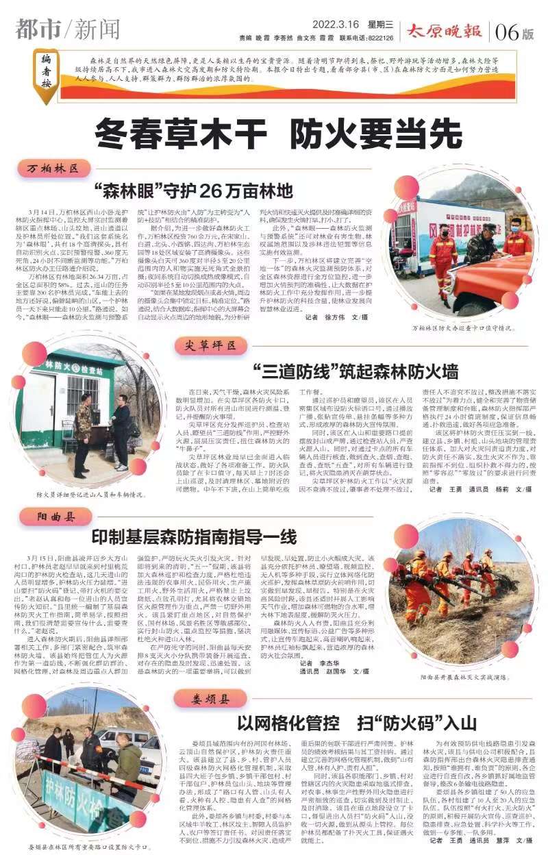 今年3月份,我省开展了以“携手护林防火,共享生态美景”为主题的第二届森林草原防火宣传月活动,并在晋中市举办了启动仪式,标志着我省春防工作也全面拉开了帷幕。